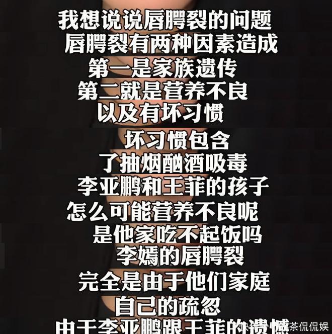 妖怪发了五个视频。内容都是冲着李亚鹏去的。话讲得挺绕。嘴上说没怀疑过人家的善心,转脸就扣帽子,说这是沽名钓誉,是拿公益搞炒作,是绑架大伙儿一起掏钱。这事儿的底子其实不复杂。很多人愿意掏钱,恰恰是因为李亚鹏过去十几年没怎么声张,就自己在那儿做。他没靠这个卖过惨,也没换过流量。现在终于有点人看见了,一些博主闻着味儿就来了。他们的目的不是公益本身。流量是个很现实的生意。这个叫妖怪的博主,话头还扯到了李嫣的唇腭裂。他把原因直接归到李亚鹏和王菲头上。他的逻辑链条是这样的:唇腭裂,一般逃不出家族遗传、营养不良,或者爹妈有些坏习惯。李亚鹏和王菲的孩子,不可能缺营养。所以,结论就指向了抽烟喝酒这类事。这种推断非常武断。医学上的事情,用这么简单的排除法就下定论,显得轻率了。它更像是一种情绪化的指责,而不是负责任的讨论。公众人物的家庭私域,常常被拖进这种缺乏依据的公共评判里,这本身就是一个值得观察的现象。我们的社会鼓励善行,也保护个人合法权益。任何讨论都应当在事实和法律框架内进行。脱离了这个基础,讨论就容易变味。公益需要清净的环境,个人的医疗隐私更不该成为舆论消费品。这些界限,有时候在流量的冲刷下变得模糊。我觉得这是个问题。妖怪的指控,提供了一个样本。它展示了网络言论可能滑向的某个方向。那里充斥着断言,但证据缺席。那里有强烈的道德指控,但逻辑基础薄弱。围观的人需要看清楚这一点。李亚鹏方面一直没有对这些视频做出公开回应。沉默也是一种态度。或许他觉得没必要进入对方设定的战场。在公益这件事上,行动的历史比即时的辩解更有重量。时间会沉淀出一些东西,也会冲走另一些。唇腭裂的成因,现代医学有它的解释谱系。把它简单归咎于父母某一方的具体生活习惯,不仅不科学,也可能对很多有类似经历的家庭造成无谓的压力。我们社会在健康科普和反对歧视方面,一直在进步。这种进步,需要每个人,包括内容创作者,共同维护其严谨和善意的基础。事情大概就是这样。一波针对个人的密集指控,牵扯出公益动机、家庭隐私和网络言论边界这几个老话题。它们每次出现,面貌都有些微不同。但核心的张力,似乎一直都在。